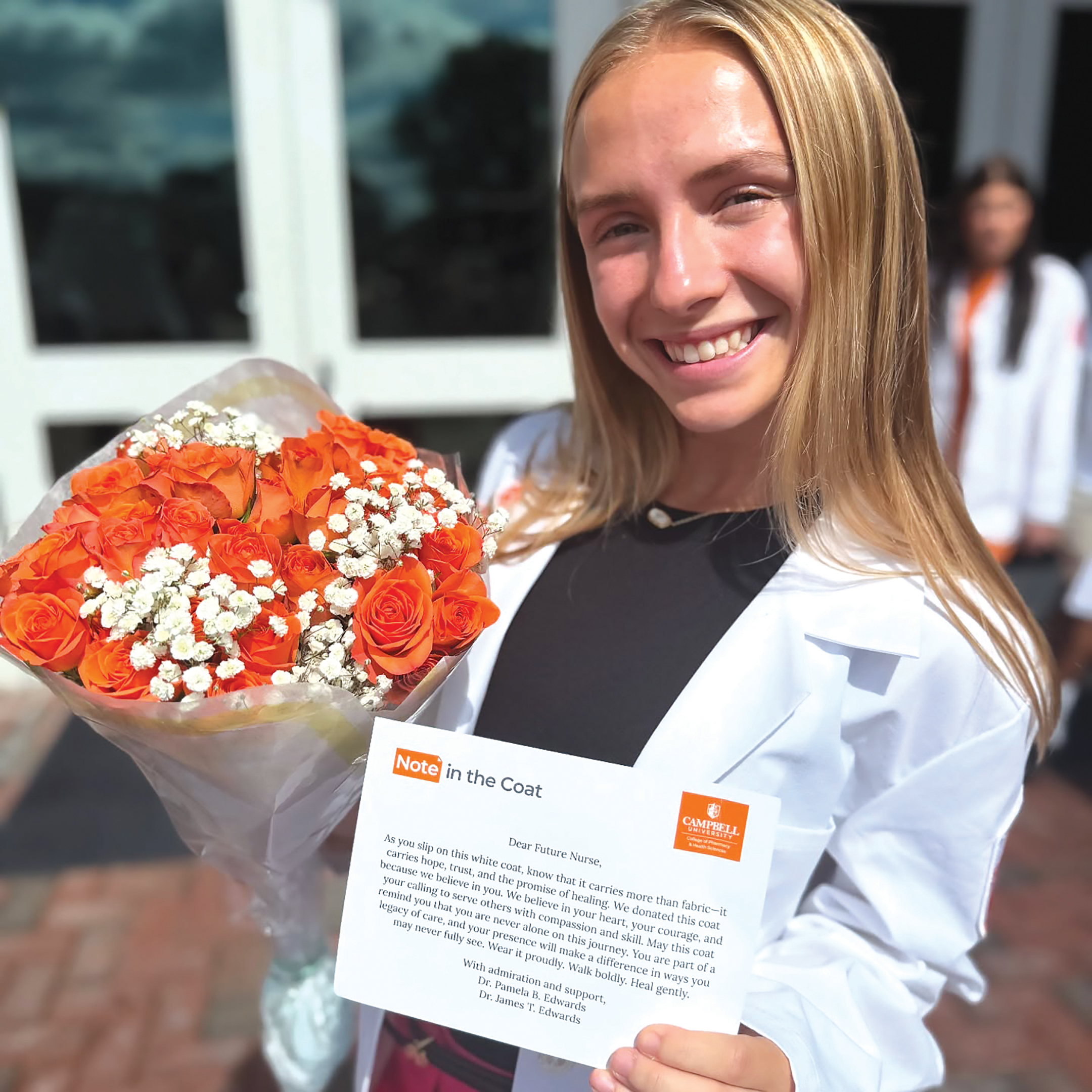 “I think there’s a spiritual nature about our students. They’re attracted to Campbell, because it’s different from other nursing programs,” Edwards says. “Every program is going to teach students that we take care of and respect all patients — no matter their background, their ethnicity, their gender or their sexual orientation. But Campbell adds that spiritual element. … We teach our students to be present and to be there with patients and families. Talk to them, touch them or just be present. That’s really all people want to know — that somebody cares for them.”